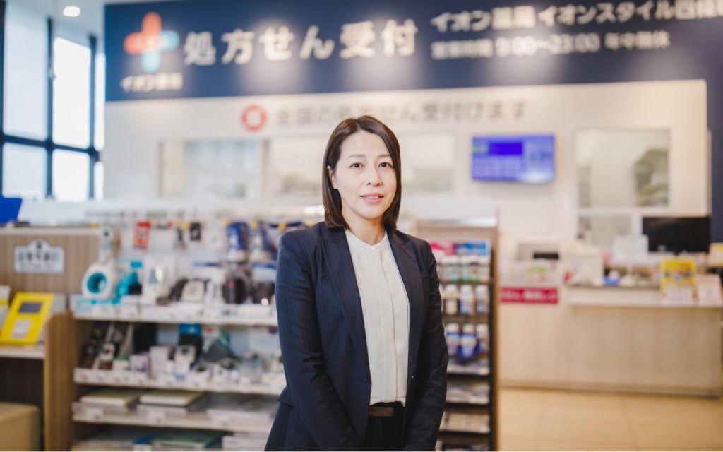 前職も調剤併設のドラッグストアで勤務していたが、働き方を見直すために転職活動を行い、イオンリテールに入社。現在はモール内のイオン薬局にて調剤、OTC医薬品の提案、健康イベントの運営などに携わる。福利厚生の「イオンシネマ特別映画鑑賞券」を利用して映画を観に行くのが楽しみの一つ。