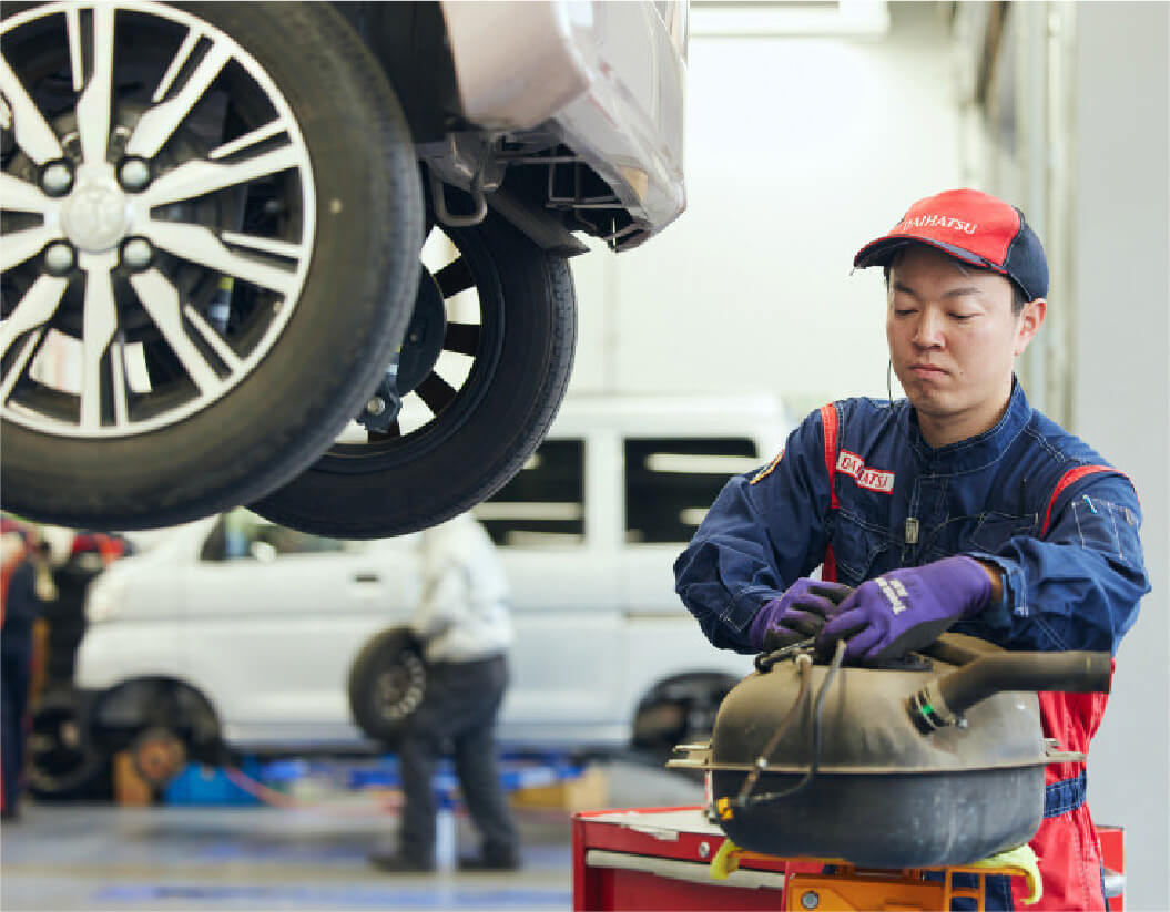 ダイハツ千葉販売の整備士は、点検から修理まで一貫して担当し、お客様に直接「ありがとう」と言っていただけるやりがいのある仕事です。先輩のサポートや研修が充実しており、未経験でも安心して成長可能。年間休日120日で働きやすく、資格手当や福利厚生も整っており、安定した環境で長く活躍できます。