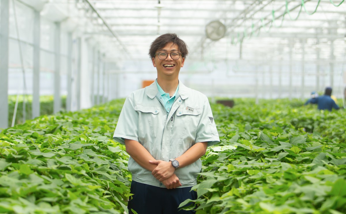 佐賀県出身。宮崎県内の大学に進学し、いつも飲み会の席にあった「黒霧島」が慣れ親しんだお酒になったことをきっかけに、霧島酒造に関心を持つ。入社後は、焼酎の製造現場管理を経て、現在は焼酎の原料となるさつまいもの調達に携わる。